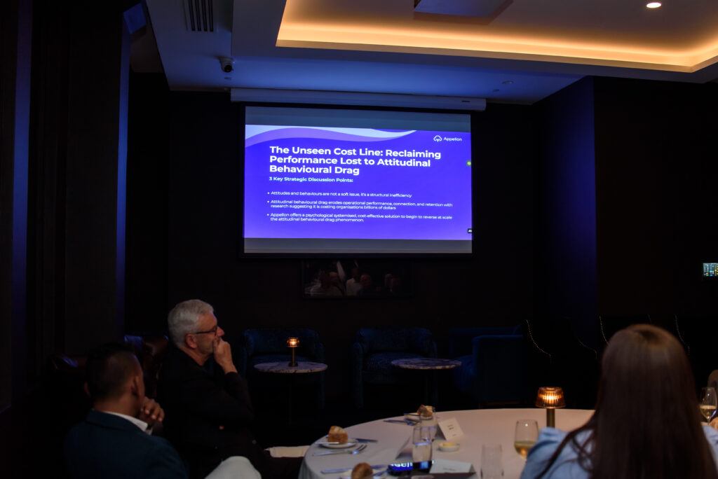 Sue explained how attitudinal behavioural drag is not a soft issue — it’s a structural inefficiency costing organisations billions. She outlined the physiological and psychological difference between cortisol-heavy workforces and oxytocin-driven teams, and how Appellon’s 10-minute weekly micro-learnings can rewire neural pathways and unlock trapped performance.